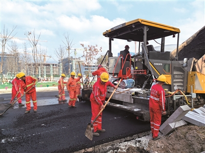 近日,台州府城配套基础设施更新改造示范工程(临海大道)施工现场一派繁忙景象。一辆辆满载沥青的卡车有序排队,将滚烫的沥青混合料倾倒在摊铺区。大型摊铺机随即前行,均匀铺撒沥青,压路机紧随其后反复碾压,确保密实度达标。工人紧密配合,有的手持铁锹填补边角,有的操作小型压路机精细碾压,有的进行质量检测把关工序,大家齐心协力为这条城市交通动脉的焕新升级按下“加速键”。